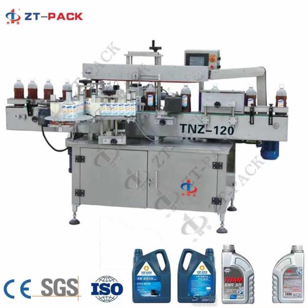 An automatic two side front and back adhesive sticker bottle labeling machine is built to automatically apply pressure-sensitive labels onto the front and/or back onto the flat, square, round bottle, oval containers simultaneously, An optional wrap station is offered for partial wrap or full wrap labels as well as tamper-evident or promotional top labels, widely used food, cosmetics industry, daily chemical, nutraceutical, pharmaceutical, gas, oil, household, and personal care industry.